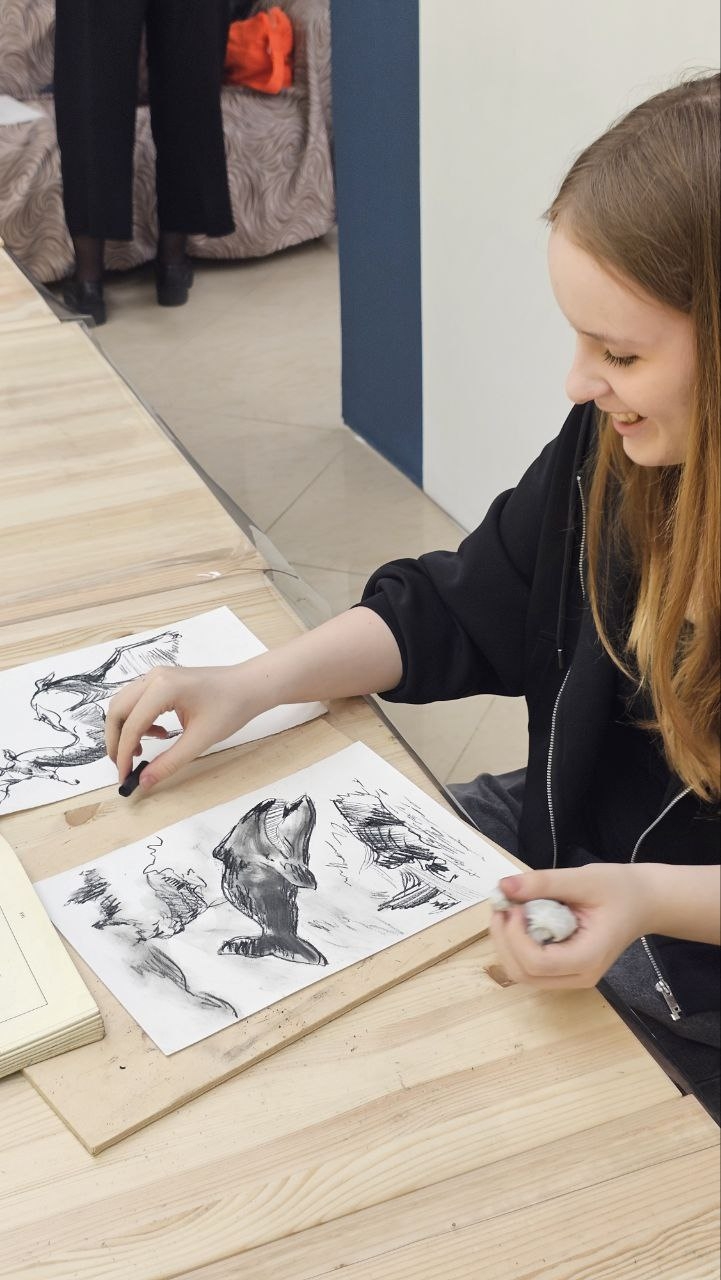 Результат: в результате ученики освоят первичные навыки построения предметов и городов по принципам линейной перспективы, разберутся в основах композиции и тона, приобретут навыки построения животных и персонажей. Скетчинг (основы наброска) – большая и серьезная подготовка к академическому рисунку.